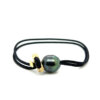 A large Grey Tahitian pearl is the centerpiece of this easy, modern bracelet strung on two black nylon cords. An 18K yellow gold toggle and bead provide an adjustable clasp. What a modern way to wear pearls!